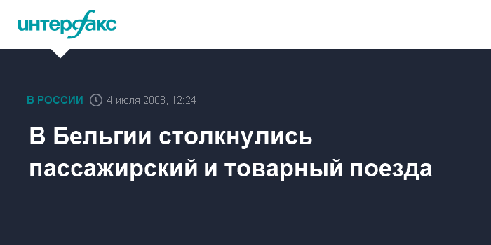 Москва. 4 июля. INTERFAX.RU - Не менее 40 человек получили ранения и травмы в четверг в результате лобового столкновения пассажирского и товарного поездов в районе города Уи в центральной части Бельгии, сообщают представители бельгийских железных дорог.