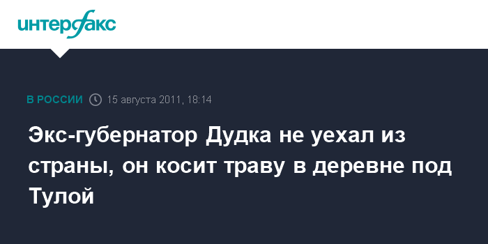 Москва. 15 августа. INTERFAX.RU - Бывший губернатор Тульской области Вячеслав Дудка назвал уголовное дело в отношение его политическим заказом и заявил, что никуда не уезжал из страны.