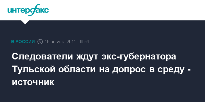 "Интерфакс" на данный момент не располагает официальной информацией СКР о вызове бывшего тульского губернатора на допрос.