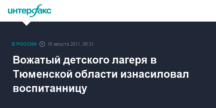Тюмень. 16 августа. ИНТЕРФАКС-УРАЛ - Следственный отдел по Тобольску (Тюменская область) привлек к уголовной ответственности вожатого детского оздоровительного лагеря 22-летнего Артура Начиметдинова, который обвиняется в изнасиловании школьницы.