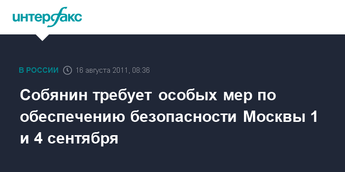 Собянин требует особых мер по обеспечению безопасности Москвы 1 и 4 сентября