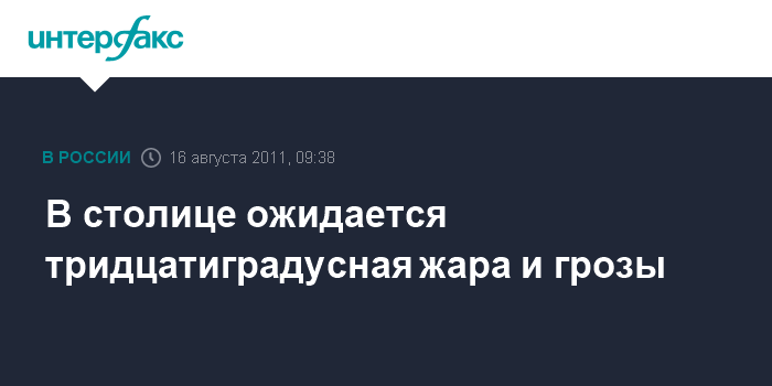 Москва. 16 августа. INTERFAX.RU – Во вторник в Москве синоптики прогнозируют жаркую погоду, переменную облачность, кратковременные дожди с грозами.