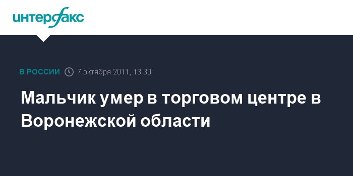 Воронеж. 7 октября. INTERFAX.RU - В Воронежской области выясняют причины гибели ребенка, скончавшегося в пятницу в торговом центре в поселке Анна, сообщил "Интерфаксу" старший помощник руководителя регионального СУ СКР Сергей Глазьев.