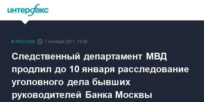 Следственный департамент МВД продлил до 10 января расследование уголовного дела бывших руководителей Банка Москвы Бородина и Акулинина
