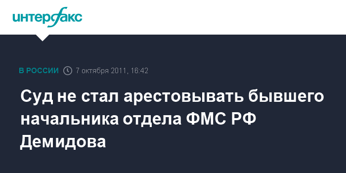 Суд не стал арестовывать бывшего начальника отдела ФМС РФ Демидова