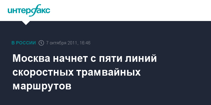Москва. 7 октября. INTERFAX.RU - Столичные власти прорабатывают проекты пяти линий скоростных трамвайных маршрутов, сообщил заместитель мэра, руководитель департамента транспорта и развития дорожно-транспортной инфраструктуры Николай Лямов.