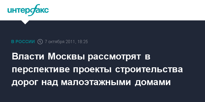 Власти Москвы рассмотрят в перспективе проекты строительства дорог над малоэтажными домами