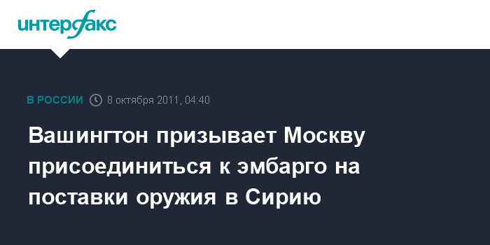 Вашингтон призывает Москву присоединиться к эмбарго на поставки оружия в Сирию