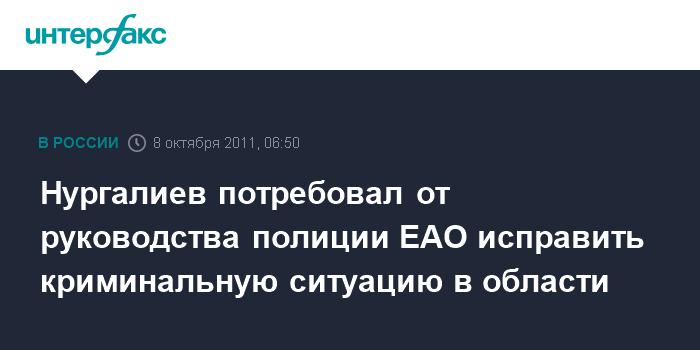 Биробиджан. 8 октября. ИНТЕРФАКС - Глава МВД России Рашид Нургалиев потребовал от руководства Управления МВД РФ по Еврейской автономной области объяснить высокий рост убийств в области и исправить ситуацию.