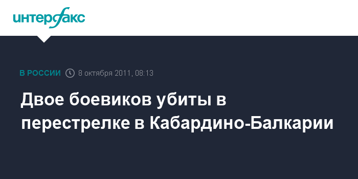 Ростов-на-Дону. 8 октября. ИНТЕРФАКС-ЮГ – Двое участников незаконных вооруженных формирований (НВФ) ликвидированы в ходе боестолкновение в Эльбрусском районе Кабардино-Балкарии, сообщили в субботу агентству "Интерфакс-Юг" в правоохранительных органах Северо-Кавказского федерального округа (СКФО).