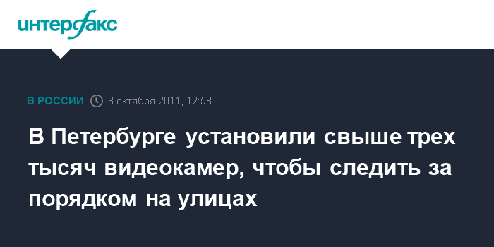 Санкт-Петербург. 8 октября. INTERFAX.RU - В людных местах Петербурга установлено свыше 3 тыс. видеокамер наружного наблюдения за порядком на улицах, сообщает пресс-служба Смольного.