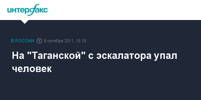 Москва. 8 октября. INTERFAX.RU - Мужчина упал с эскалатора на станции метро "Таганская", передает корреспондент "Интерфакса".