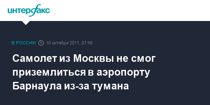 Самолет из Москвы не смог приземлиться в аэропорту Барнаула из-за тумана