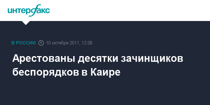 Лондон. 10 октября. INTERFAX.RU - Полиция Каира арестовала десятки организаторов беспорядков в Египте, в результате которых, погибли по меньшей мере три сотрудника сил безопасности и 21 демонстрант, сообщает в понедельник египетская газета Al Ahram.