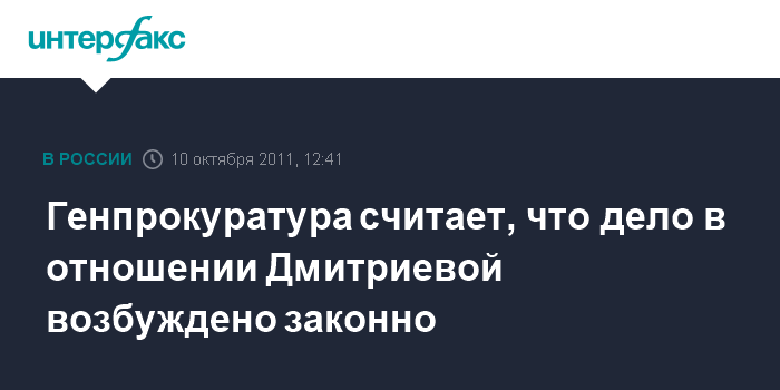 Генпрокуратура считает, что дело в отношении Дмитриевой возбуждено законно