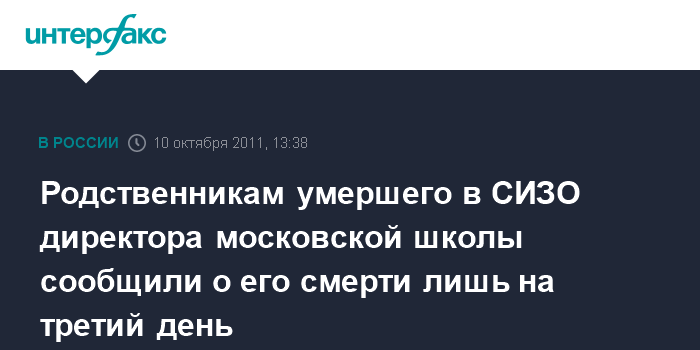 Родственникам умершего в СИЗО директора московской школы сообщили о его смерти лишь на третий день