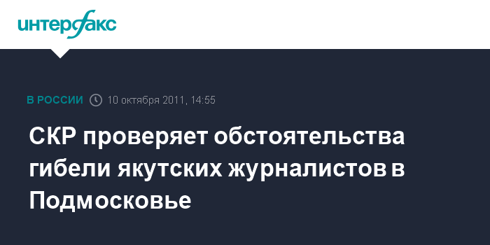 СКР проверяет обстоятельства гибели якутских журналистов в Подмосковье