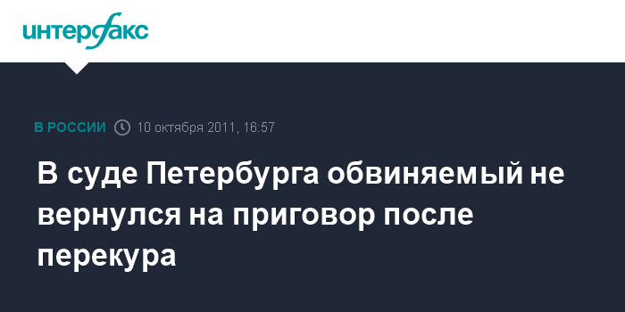 В суде Петербурга обвиняемый не вернулся на приговор после перекура
