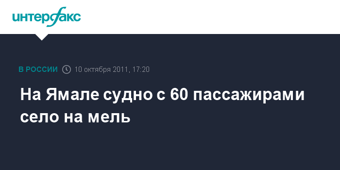"Инцидент произошел в 15:30 мск в Шурышкарском районе округа. Пассажирский скоростной теплоход "Метеор" сел на мель на реке Малая Обь в 35 километрах от села Мужи. На борту теплохода находится 60 пассажиров. Никто из них не пострадал", - отметил представитель управления.