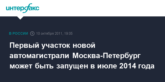Первый участок новой автомагистрали Москва-Петербург может быть запущен в июле 2014 года