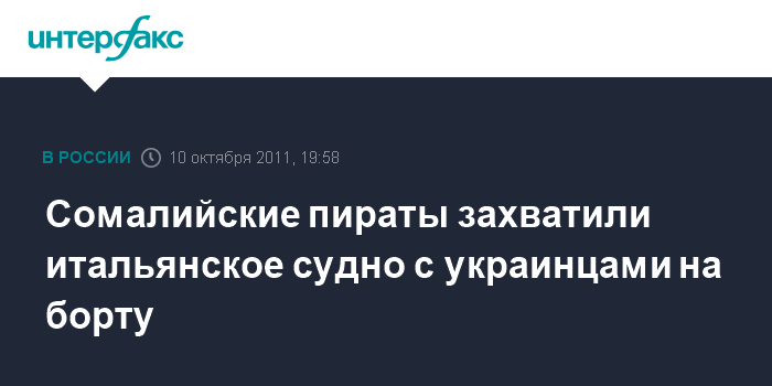 Рим. 10 октября. INTERFAX.RU - Группа пиратов захватила итальянское судно Montecristo в нескольких сотнях километров от берегов Сомали, информируют в понедельник римские СМИ.