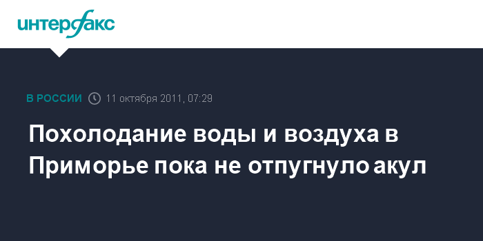 "Я почти уверен, что серые акулы и акулы-мако ушли из прибрежных вод Приморья, для них температура неприемлема. Но утверждать, что белая акула ушла, я не могу", - сообщил во вторник агентству "Интерфакс - Дальний Восток" заведующий лабораторией ихтиологии Института биологии моря кандидат биологических наук Андрей Баланов.