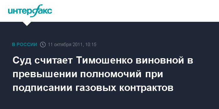 Суд считает Тимошенко виновной в превышении полномочий при подписании газовых контрактов