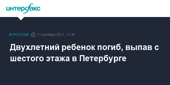 Санкт-Петербург. 11 октября. INTERFAX.RU - Двухлетний мальчик выпал из окна шестого этажа в Петербурге, сообщил "Интерфаксу" во вторник источник в правоохранительных органах.