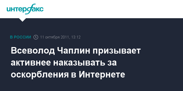 Москва. 11 октября. INTERFAX.RU - Глава отдела по взаимодействию церкви и общества Московского патриархата протоиерей Всеволод Чаплин предлагает активнее привлекать к ответственности за анонимные оскорбления на национальной или религиозной почве в Интернете.