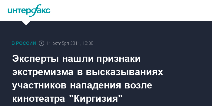 Москва. 11 октября. INTERFAX.RU - Лингвистическая экспертиза признала экстремистскими высказывания злоумышленников, напавших на двух девушек и сотрудников полиции около кинотеатра "Киргизия" в Москве, сообщил "Интерфаксу" источник в правоохранительных органах.