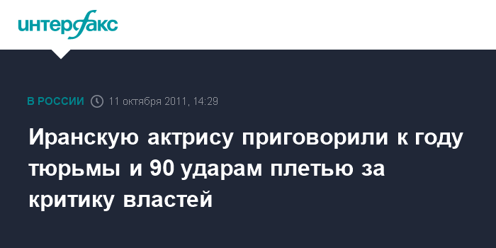 Сидней. 11 октября. INTERFAX.RU - Иранскую актрису Марзийе Вафамехр суд приговорил к году лишения свободы и 90 ударам плетью за ее роль в австралийском фильме, который рассказывает о запретах и ограничения, введенных в исламской республике для актеров, сообщает газета Sydney Morning Herald.
