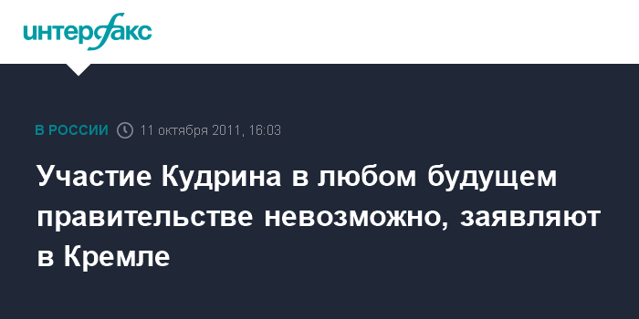 Москва. 11 октября. INTERFAX.RU - В Кремле не видят Алексея Кудрина в будущем составе правительства.