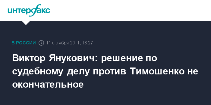 Киев. 11 октября. INTERFAX.RU - Президент Украины Виктор Янукович заявляет, что приговор экс-премьеру Юлии Тимошенко не является окончательным, так как ее защита намерена обжаловать его.