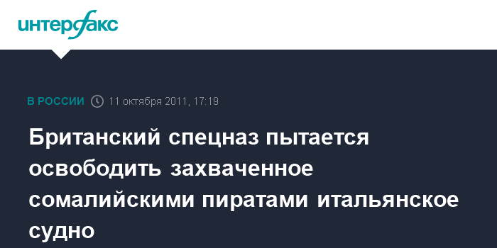 Рим. 11 октября. INTERFAX.RU - Бойцы британского спецназа проводят во вторник операцию по освобождению 23 членов экипажа итальянского судна Montecristo, удерживаемого сомалийскими пиратами, сообщают римские СМИ.