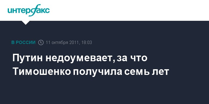 "Семь лет - цифра такая… Сама по себе цифра - хорошая. Я, правда, не очень понимаю, за что ей дали эти семь лет", - заявил Путин, прокомментировавший в Пекине по просьбе журналистов решение украинского суда по делу Тимошенко.