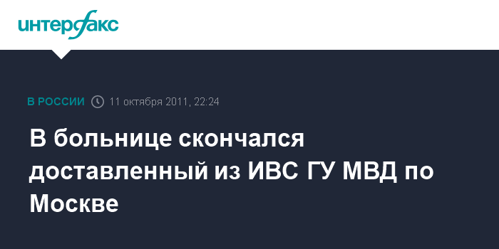 В больнице скончался доставленный из ИВС ГУ МВД по Москве
