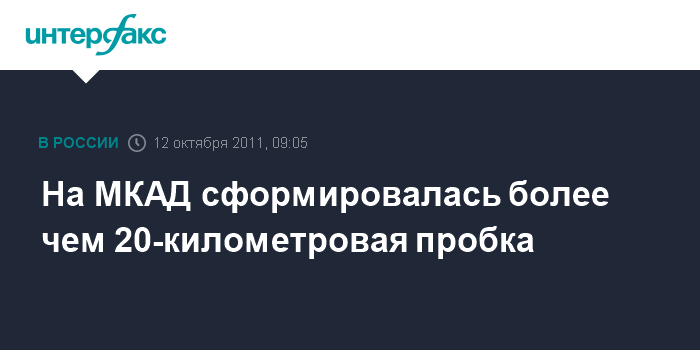 Москва. 12 октября. INTERFAX.RU – Утром в столице наиболее значительная пробка сформировалась на внутренней стороне МКАД от шоссе Энтузиастов и до Каширского шоссе. Общая протяженность затор составляет более 20 км.