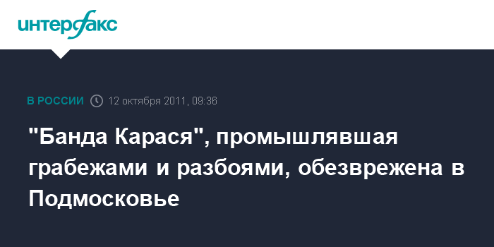 "Благодаря профессиональным действиям сотрудников Главного управления МВД РФ по ЦФО пресечена деятельность так называемой "банды Карася", почти три года наводящей ужас на жителей Московского региона", - сказал Михайлов в среду "Интерфаксу".