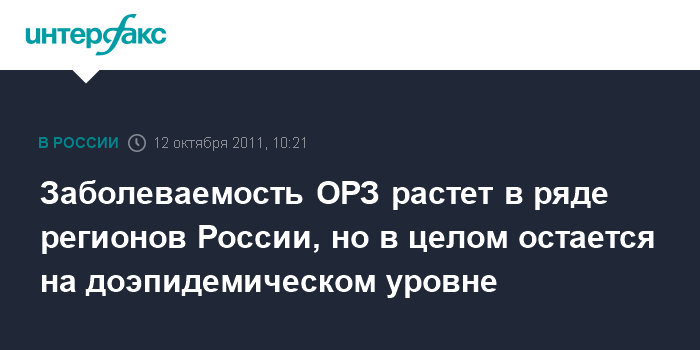 Москва. 12 октября. INTERFAX.RU - В ряде российских регионов заболеваемость ОРЗ достигла уровня эпидемического порога, сообщил руководитель Роспотребнадзора, главный государственный санитарный врач РФ Геннадий Онищенко.