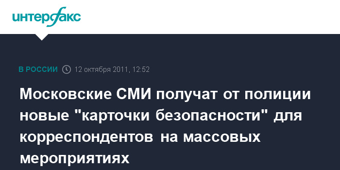 Московские СМИ получат от полиции новые "карточки безопасности" для корреспондентов на массовых мероприятиях