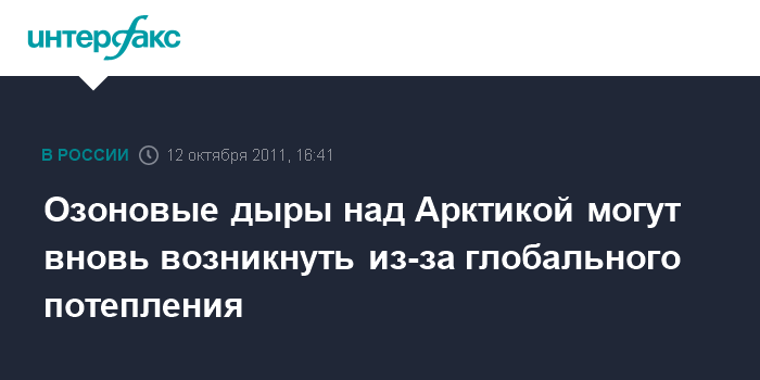 Санкт-Петербург. 12 октября. INTERFAX.RU - Глобальное потепление климата на Земле может стать причиной появления озоновых дыр в Арктике, подобных той, которую наблюдали ученые в марте-апреле текущего года, считает заведующий лабораторией Главной геофизической обсерватории им.А.Войкова Игорь Кароль.