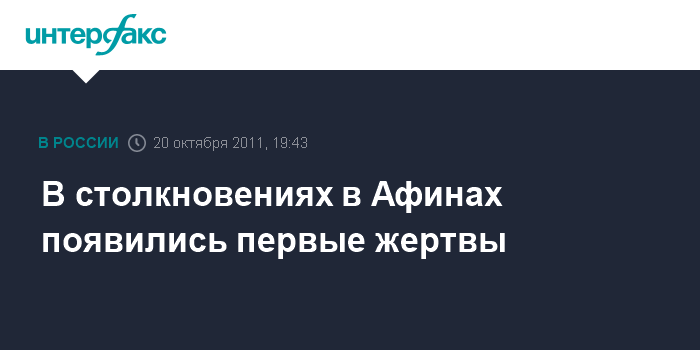 Париж. 20 октября. INTERFAX.RU - Как минимум один человек погиб в центре Афин во время столкновений манифестантов, протестующих против ужесточения экономической политики греческого государства, и полиции.