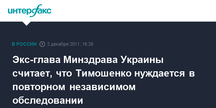 Экс-глава Минздрава Украины считает, что Тимошенко нуждается в повторном независимом обследовании