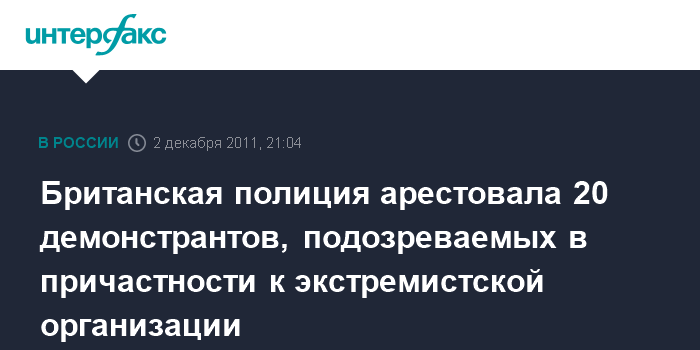 Британская полиция арестовала 20 демонстрантов, подозреваемых в причастности к экстремистской организации