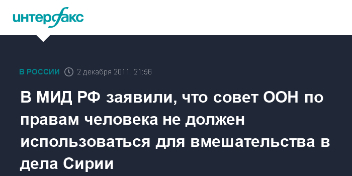 В МИД РФ заявили, что совет ООН по правам человека не должен использоваться для вмешательства в дела Сирии