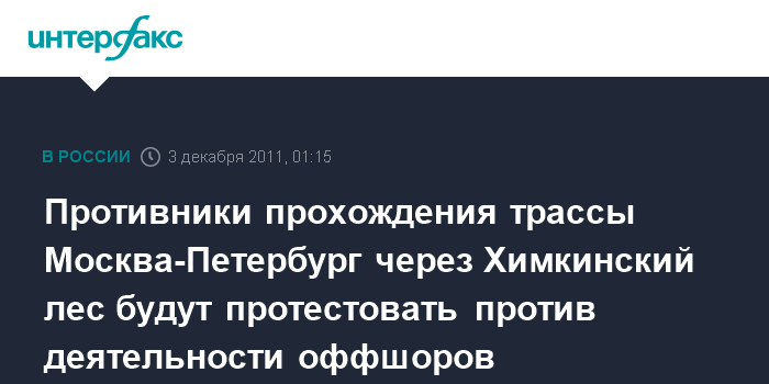 Противники прохождения трассы Москва-Петербург через Химкинский лес будут протестовать против деятельности оффшоров