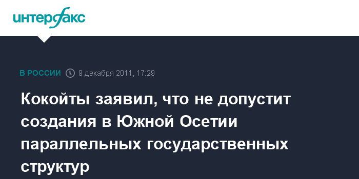 Отвечая на вопрос о предстоящей в субботу инаугурации Аллы Джиоевой, считающей себя победителем на выборах президента Южной Осетии, Кокойты сказал: "Создание каких-либо параллельных органов власти является серьезным преступлением против государства".