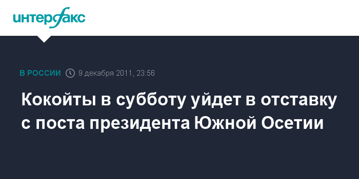 Кокойты в субботу уйдет в отставку с поста президента Южной Осетии