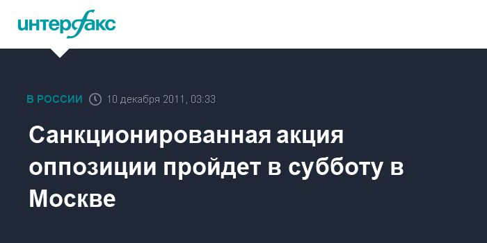 Москва. 10 декабря. ИНТЕРФАКС - Многотысячная акция оппозиции, санкционированная властями, пройдет в центре Москвы в субботу.