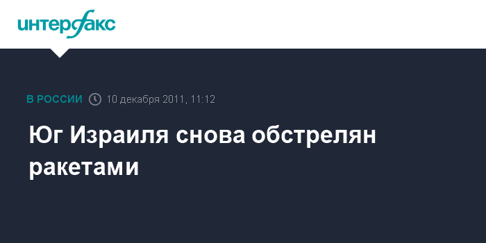 Иерусалим. 10 декабря. INTERFAX.RU - Боевики ХАМАС в субботу нанесли очередной ракетный удар по югу Израиля, сообщило израильское Армейское радио. По имеющимся данным, из сектора Газа было запущено две ракеты. О жертвах и разрушениях пока ничего неизвестно.